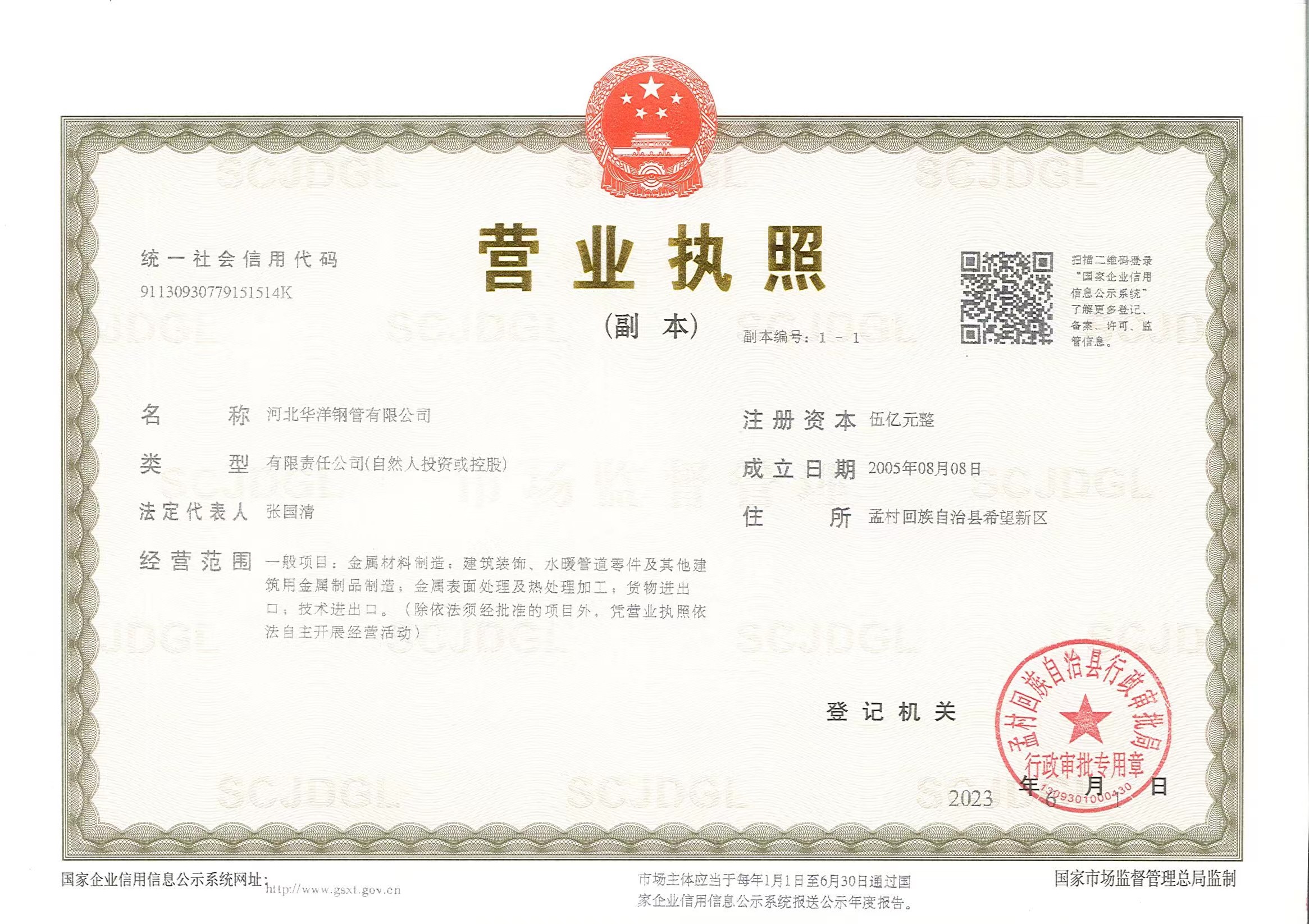 河北華洋鋼管有限公司公司創(chuàng)建于2005年,注冊(cè)資金5億元,公司占地面積1000余畝,固定資產(chǎn)12億元,年銷售收入近100億元,現(xiàn)有員工600余人。“華洋牌"高頻直焊鋼管被評(píng)為“河北省名牌產(chǎn)品”,年生產(chǎn)能力可達(dá)260萬(wàn)噸,2024年河北華洋鋼管有限公司榮獲河北省百?gòu)?qiáng)民營(yíng)企業(yè)(69位),河北省百?gòu)?qiáng)制造業(yè)(57位)榮譽(yù)稱號(hào)。