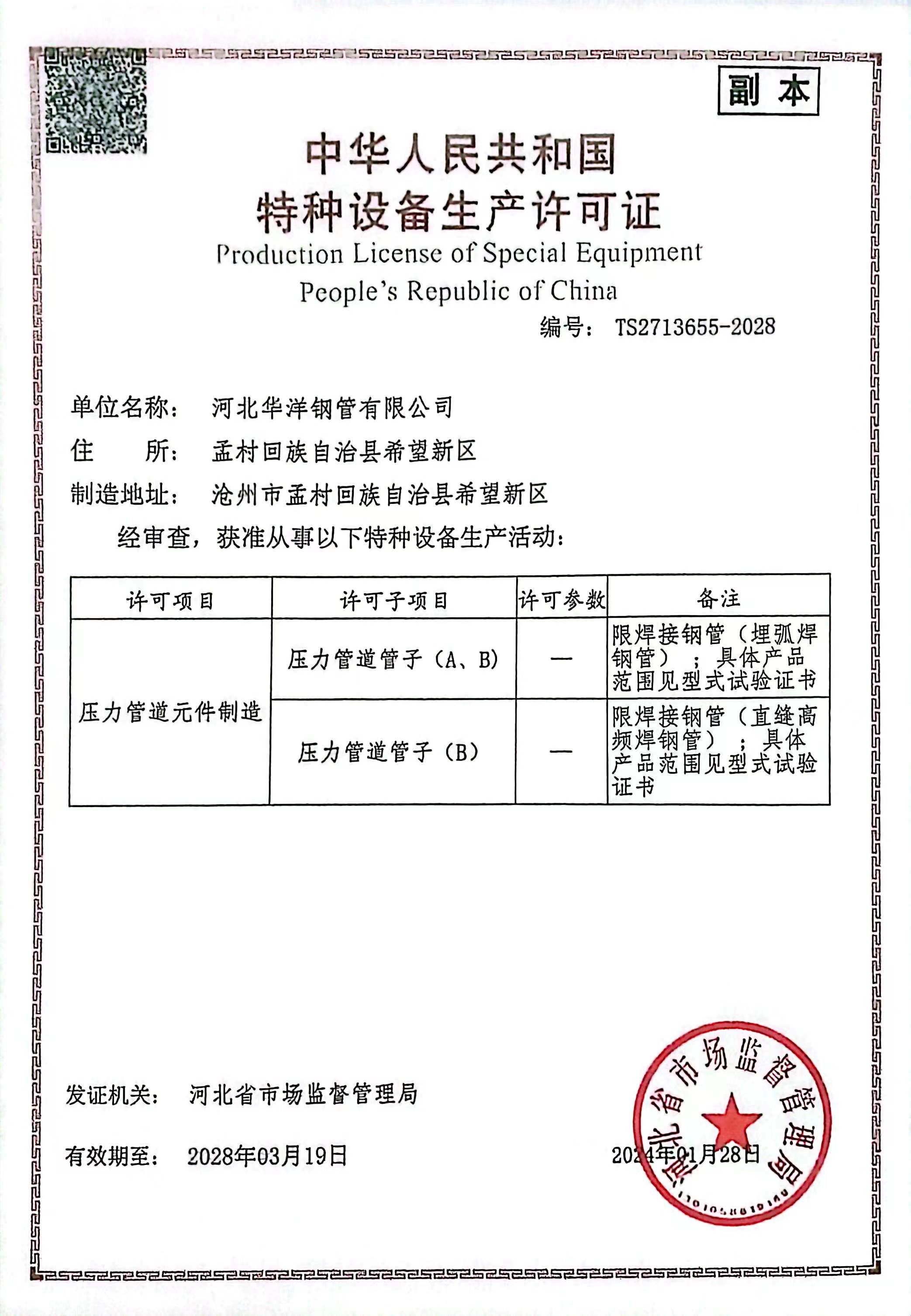 公司現(xiàn)有17條新型的自動(dòng)化鋼管生產(chǎn)線,包括Φ73-660.4高頻直縫焊鋼管生產(chǎn)線14條、Φ406.4-Φ1422.4直縫雙面埋弧焊鋼管生產(chǎn)線3條,并配備有一條防腐生產(chǎn)線,可進(jìn)行3PE、2PE、FBE、2PP、3PP防腐處理,同時(shí)還可提供鋼管深加工服務(wù)。公司擁有先進(jìn)的理化實(shí)驗(yàn)室,可承擔(dān)鋼管的各項(xiàng)物理及化學(xué)檢測(cè)與試驗(yàn)。公司先后取得了ISO9001質(zhì)量管理體系認(rèn)證、ISO14001環(huán)境管理體系認(rèn)證、ISO45001職業(yè)健康安全管理體系認(rèn)證、特種設(shè)備制造許可證、API5L和API2B認(rèn)證證書、歐盟CE認(rèn)證、俄羅斯GOST認(rèn)證、中海油入網(wǎng)證、安全生產(chǎn)標(biāo)準(zhǔn)化二級(jí)企業(yè)等標(biāo)準(zhǔn)質(zhì)量體系認(rèn)證。